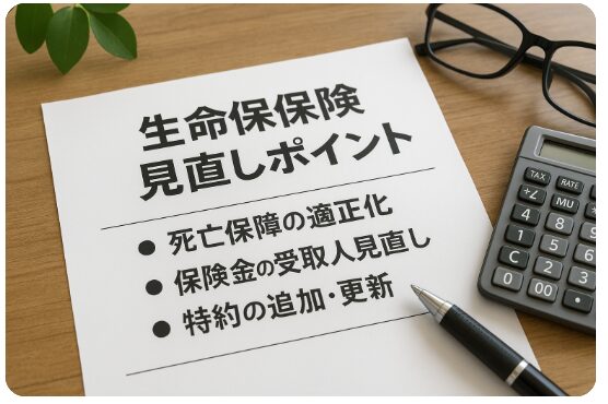 目安としては3〜5年ごと、または結婚・出産・住宅購入・定年などのライフイベントごとに見直すのが効果的です。ライフプランが変われば必要な保障額や内容も変わるため、放置すると「過剰保障でムダな支出」や「保障不足によるリスク」に直結します。