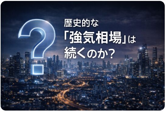 • 「出口」からの逆算: 10年以上の長期保有ができるのであれば高値掴みも許容できますが、数年以内に資金を使う予定がある場合は、2026年の高値圏での無理な投資は禁物です。