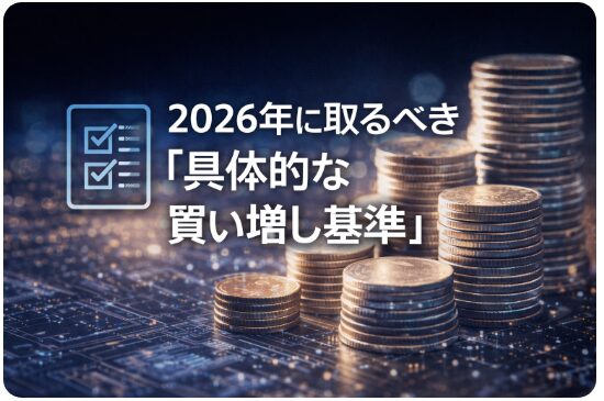 • 一括投資の注意点: 2026年1月のような急騰時にまとまった資金を入れるのは、心理的負荷が大きくなります。総資産の50%以上を一度に投入するのは避けるべきです。