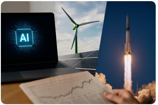 AI・脱炭素・宇宙といったテーマは、社会や産業の大きな変化を背景に生まれるストーリーが軸になります。