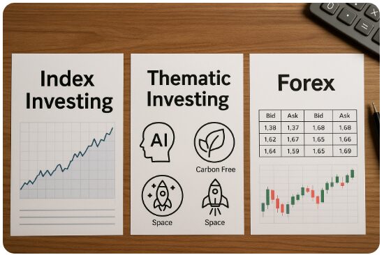 たとえばインデックス投資は、市場全体の成長を取り込む安定重視の投資。一方でテーマ株投資は、特定分野の成長に集中して賭ける分、リターンもブレやすいという特徴があります。